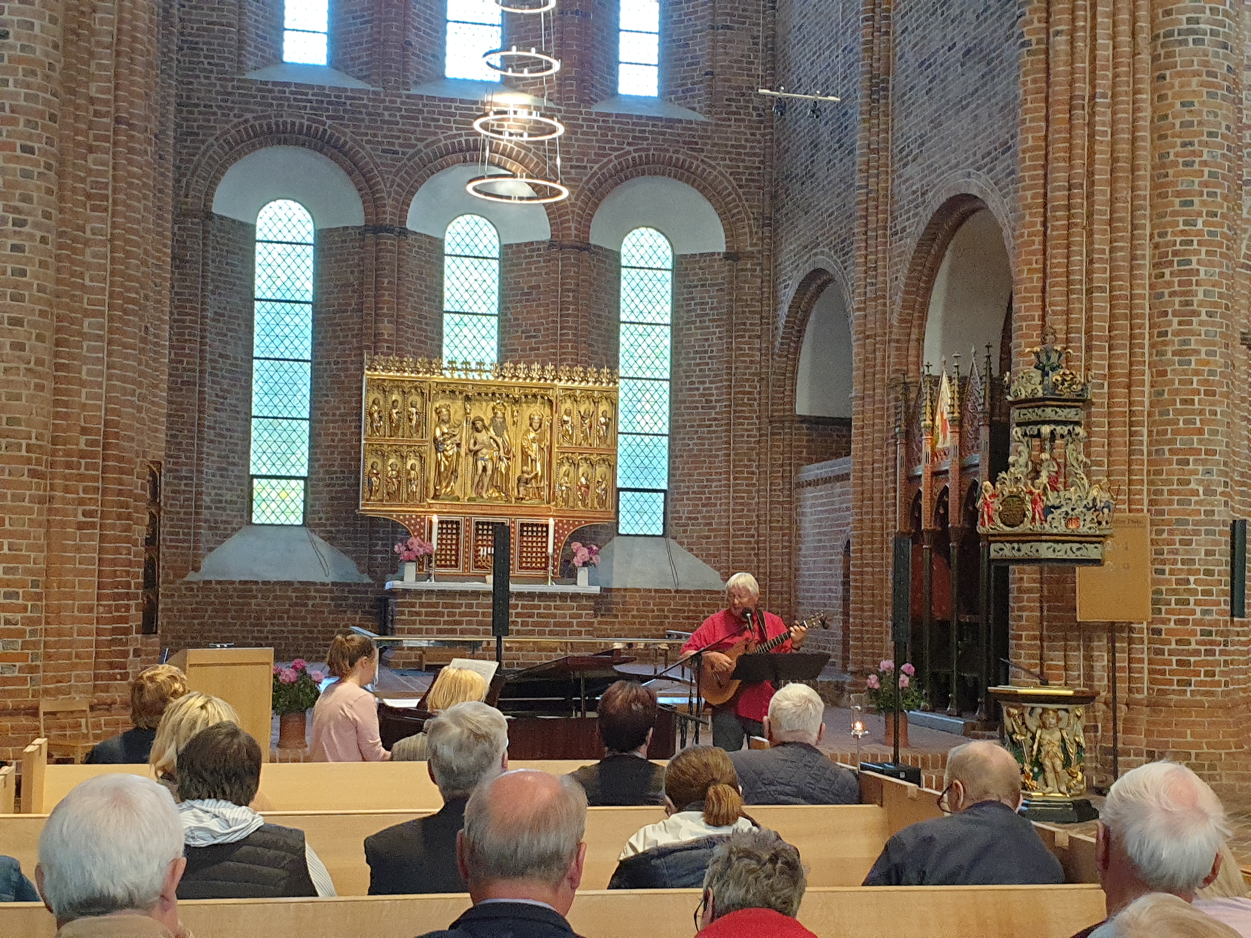 Das Doppelkonzert am 24. Mai 2023 in der Kirche zu Lügumkloster wurde zu einer rundum gelungenen Veranstaltung. Etwa 200 Konzertbesucher hatten den Weg nach Lügumkloster gefunden - und der Weg hat sich gelohnt: Die beiden sehr gut aufgelegten Künstler, Fritz Baltruweit und Aksel Krogslund Olesen sowie Friederike Magaard am Klavier und der Chor von Aksel Krogslund Olesen boten eine vielseitige Palette an "Liedern für Frieden und Freiheit" dar. Auch das Publikum sang bei den gemeinsamen Liedern begeistert mit.